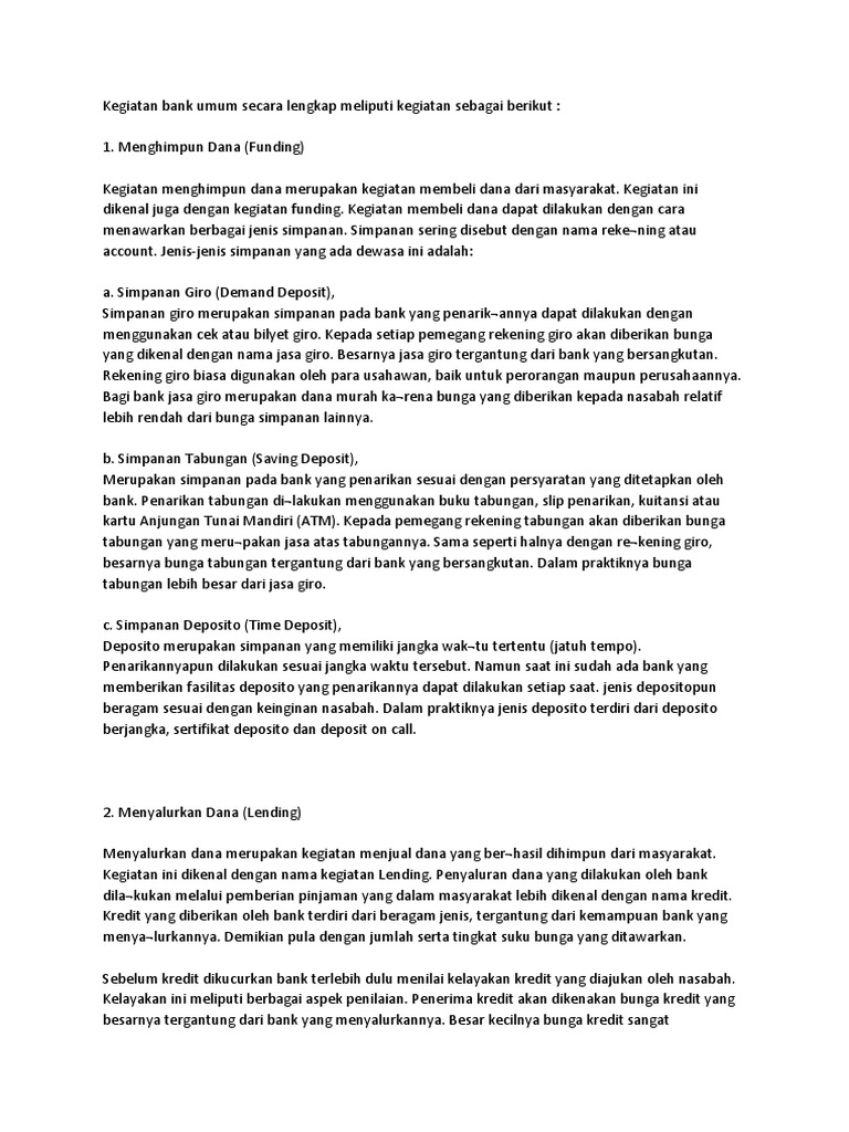 Kegiatan Bank Umum Secara Lengkap Meliputi Kegiatan Sebagai Berikut from imgv2-1-f.scribdassets.com Mar 21, 2016 · jurnal penyesuaian juga diperlukan untuk saldo akun aset tetap lainnya dan semua saldo akun "akumulasi amortisasi" aset tak berwujud, dengan cara yang sama. Pengumuman pemenang lelang umum pengadaan kalender dan agenda edisi tahun 2022 pt bpd kaltim kaltara senin, 05 juli 2021 ; Uang kartal merupakan uang kertas dan uang logam yang ada di tangan masyarakat umum, sedangkan uang giral mencakup saldo rekening koran/giro milik masyarakat umum yang disimpan di bank. Apr 25, 2016 · narrow money yang biasanya disimbolkan dengan m1 terdiri dari uang tunai/kartal (currency) dan uang giral (demand deposit). Dalam konsep wadiah, yad al dhommanoh , pihak yang menerima titipan boleh menggunakan atau memanfaatkan uang atau barang yang dititipkan. Dengan margin yang sudah disepakati diawal, maka besar angsuran nasabah perbulan sudah disepakati bersama, dan besarnya angsuran akan tetap sama/ pasti sampai dengan jangka waktu pembiayaan berakhir Perbedaannya adalah, istilah ldr digunakan oleh bank konvensional sedangkan istilah fdr digunakan oleh bank syariah. Salah satu syarat yang perlu dipenuhi untuk menjadi nasabah prioritas adalah memiliki saldo mengendap selama satu tahun terakhir minimal rp500 yang terdapat di tabungan/giro, deposito, investasi atau gabungan dari semuanya.